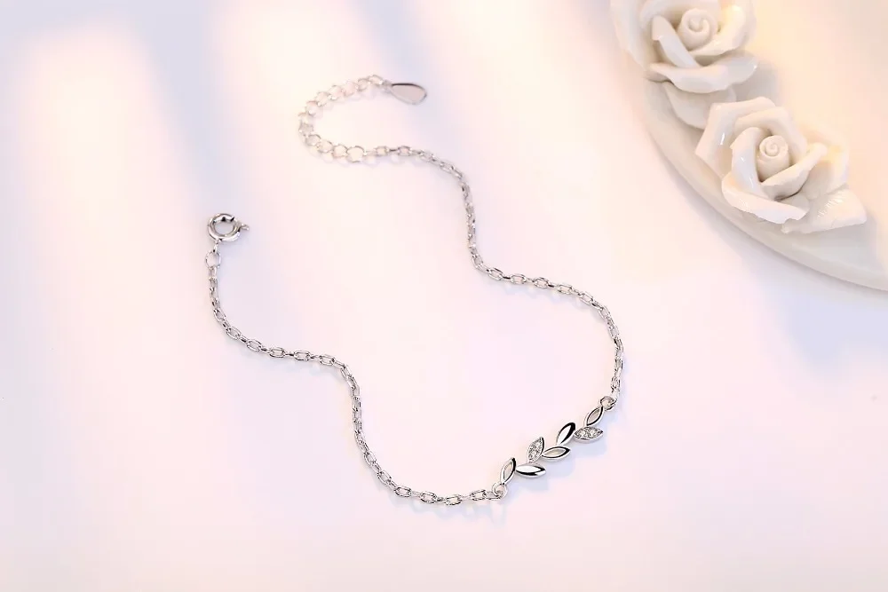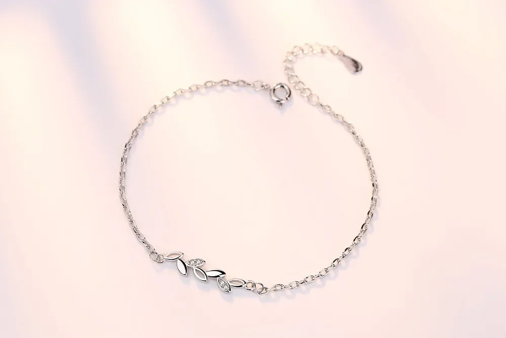 925 Sterling Silver Leaves Charm Bracelets For Women Crystal Jewelry pulseira